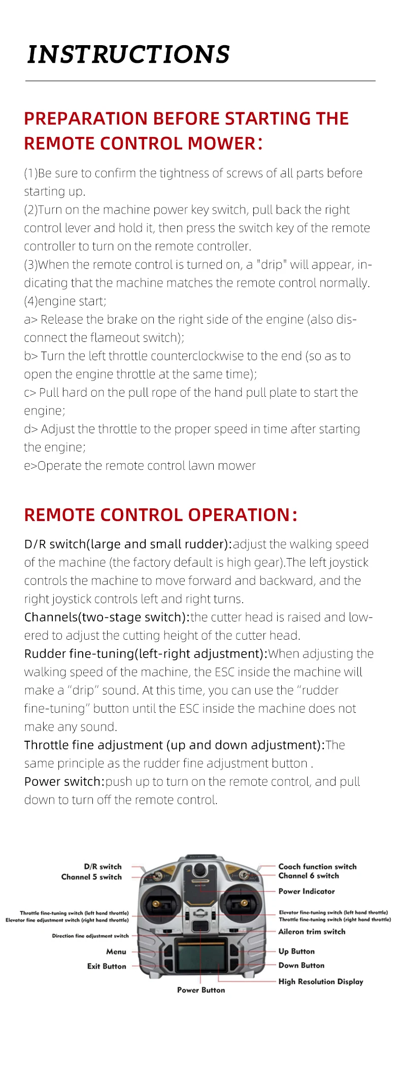 5. The mowing width can reach 550mm, the height is 10-150mm, and the Wo